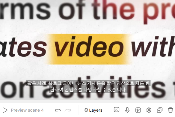 활용 사례: 블로그 글이나 뉴스 기사 등을 짧은 영상으로 자동 변환하여 콘텐츠를 다양화할 수 있습니다.