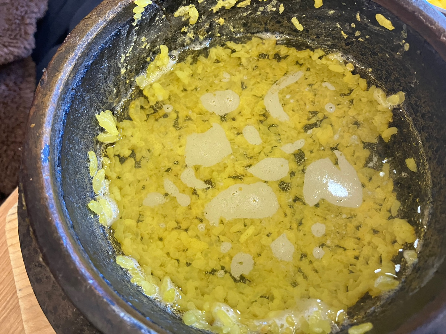 치자돌솥밥을 다 드시고 나면 물을 부어 누릉지도 해 드세요.