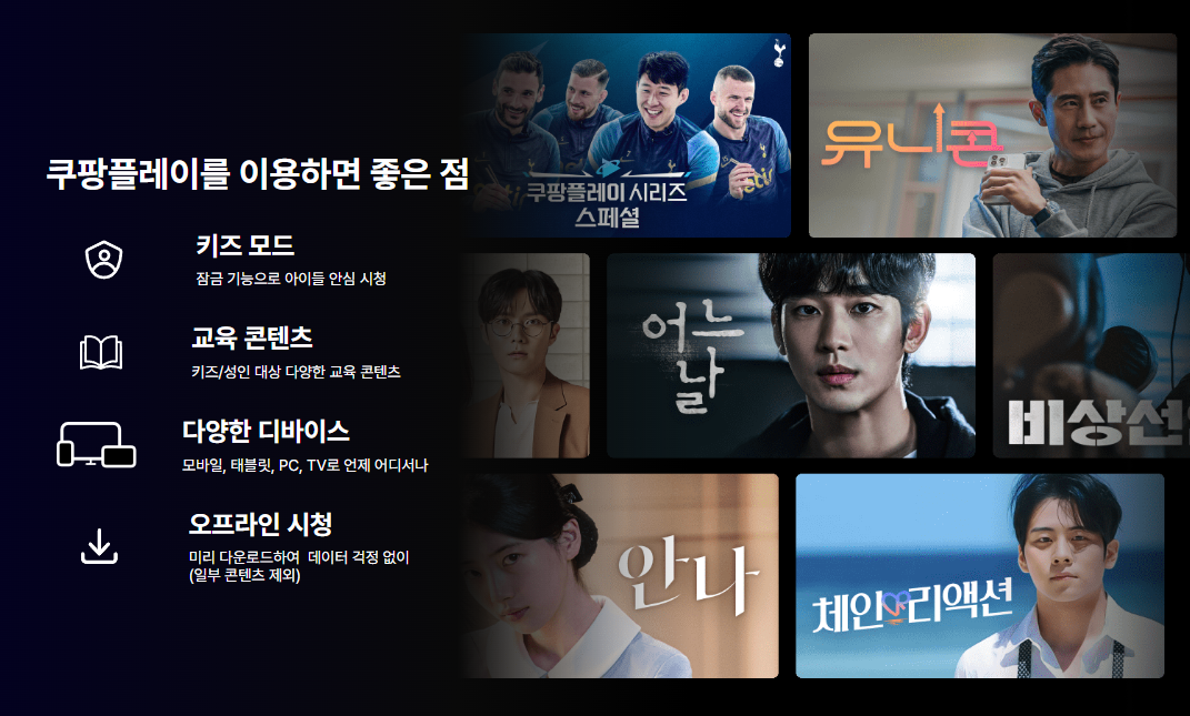 특히 쿠팡플레이는 영화뿐 아니라 국내외 드라마, 실시간 뉴스, 스포츠 경기까지 다양해서 넷플릭스 못지않게 선택의 폭이 넓습니다.