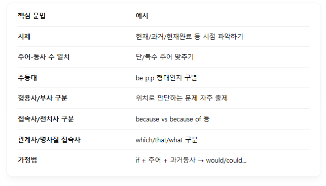 ✅ 1. 자주 나오는 문법 포인트 집중 공략